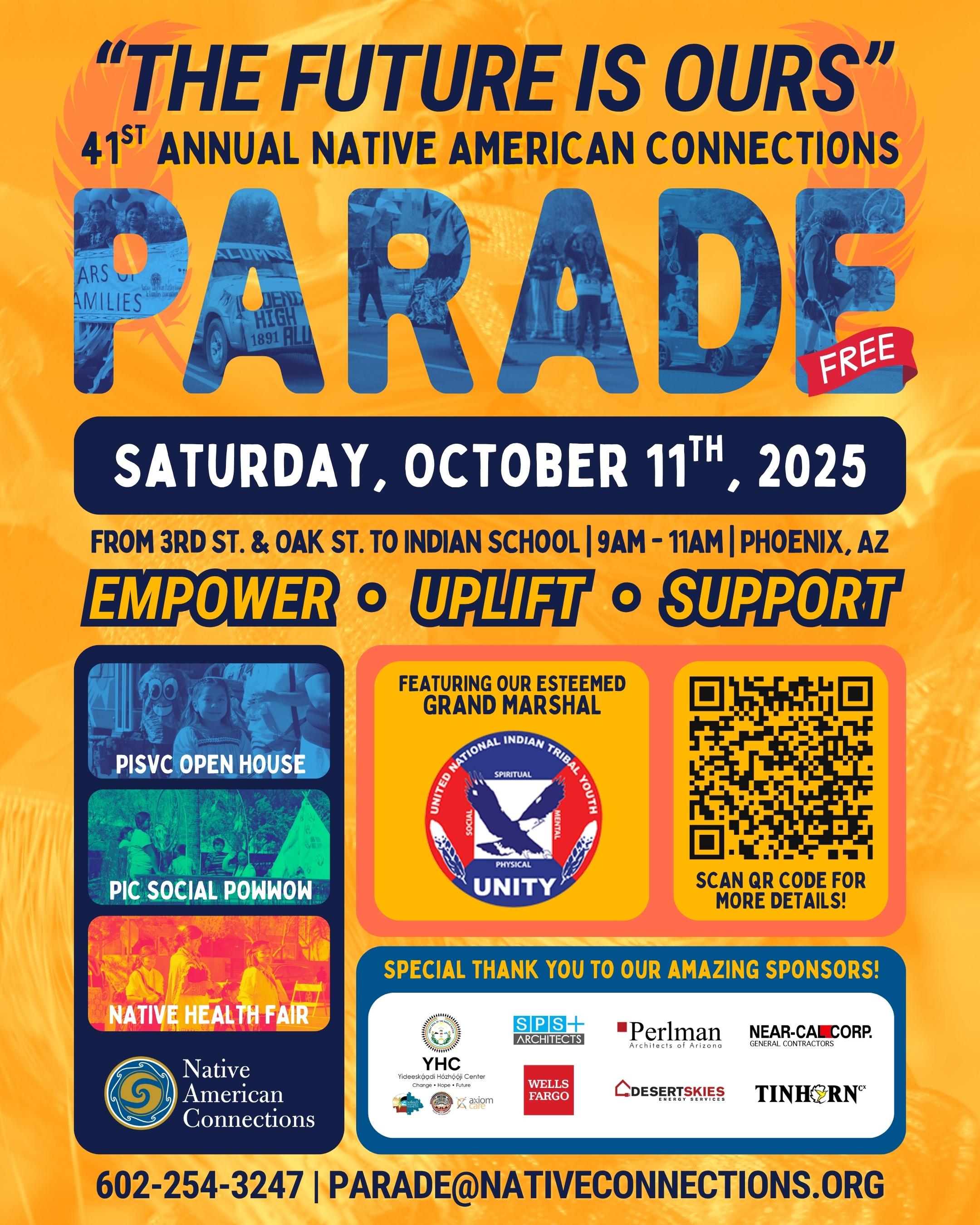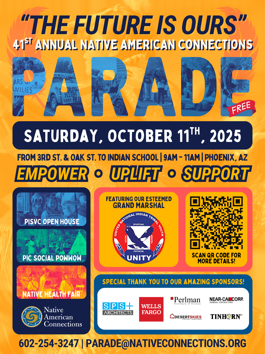 We’re thrilled to announce the 41st Annual Native American Connections Parade—and this year, we’re turning up the celebration with a youth-focused theme: “The Future is Ours”!