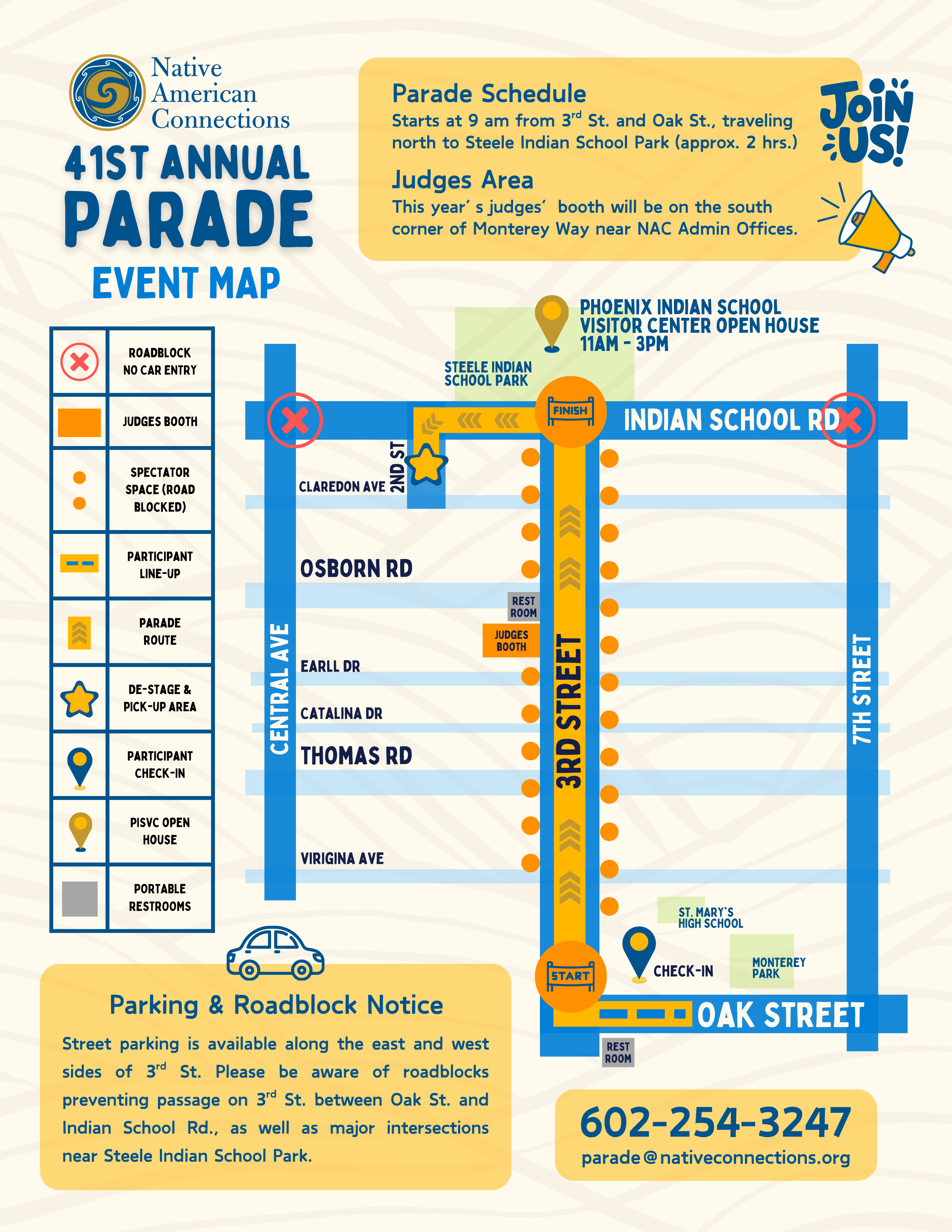 The Annual Native American Connections Parade is a Native American Recognition Days (NARD) event, a celebration of Native American heritage and culture, highlighting a new theme each year that embodies resiliency and community. Is your organization hosting an event for Native American Recognition Days? Get your event in the NARD Card and invite the Phoenix community to your event! Please register your event by August 29th!